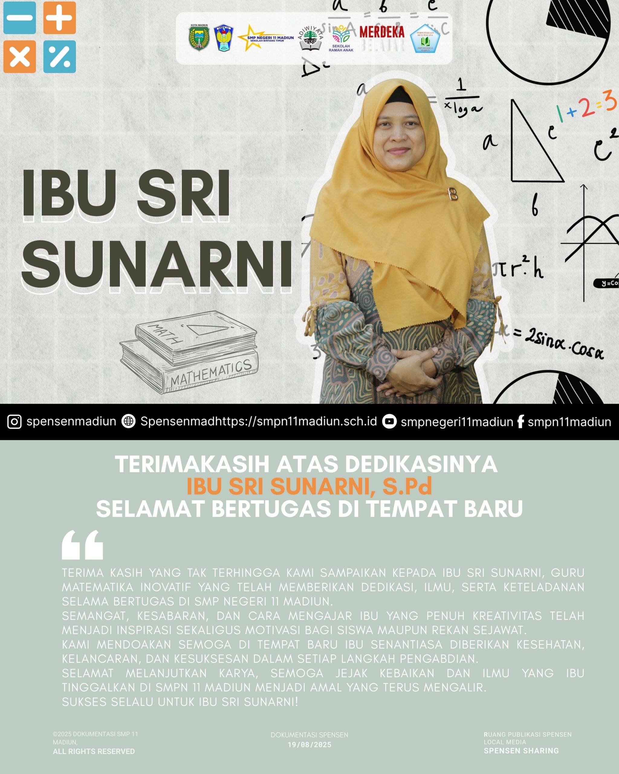 Selamat melanjutkan karya, semoga jejak kebaikan dan ilmu yang Ibu tinggalkan di SMPN 11 Madiun menjadi amal yang terus mengalir.