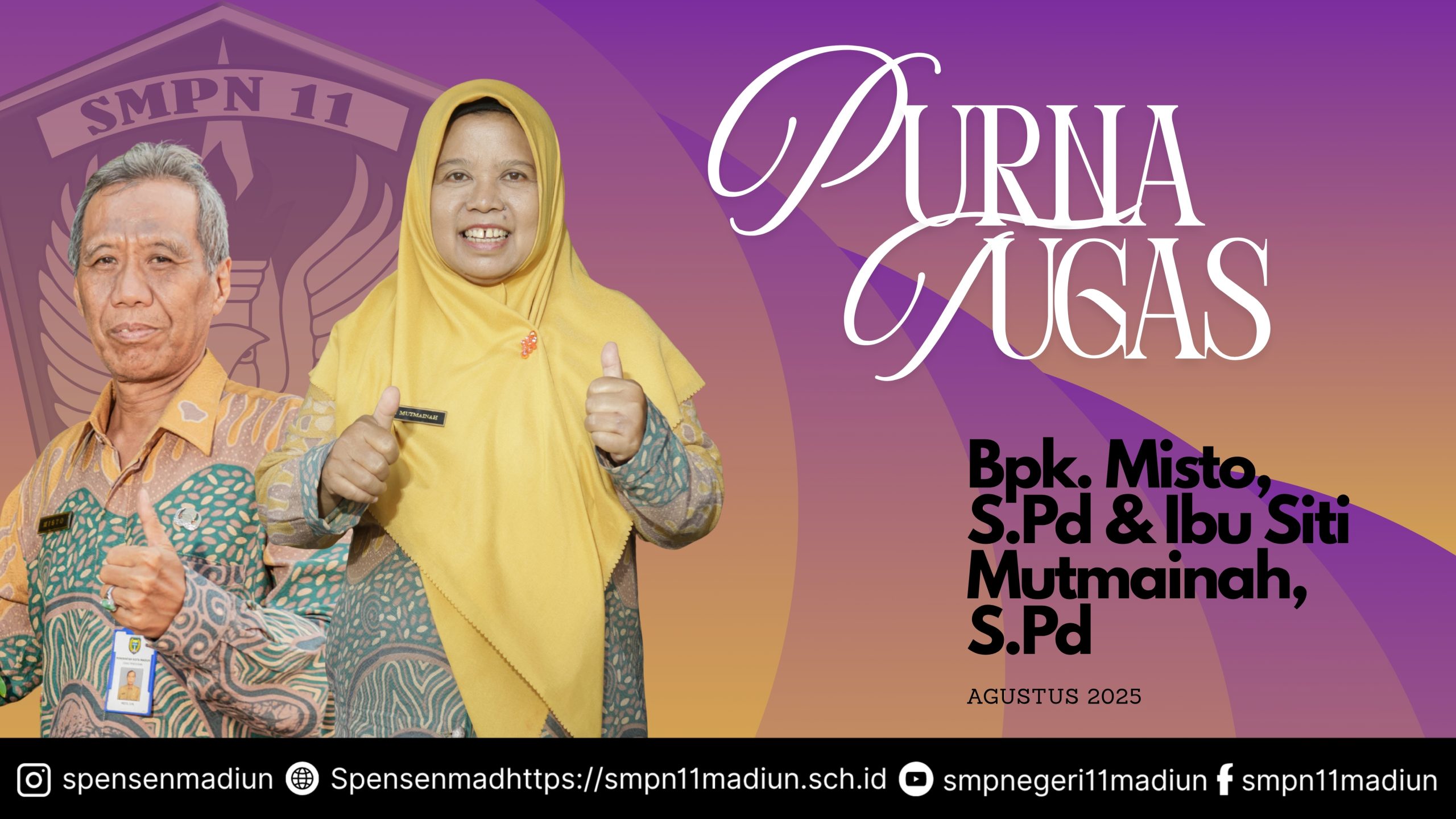 Terima kasih atas dedikasi, ilmu, dan keteladanan yang telah Bapak dan Ibu berikan selama mengabdi di SMPN 11 Madiun. Jejak langkah dan semangat Bapak akan selalu menjadi inspirasi bagi kami semua.